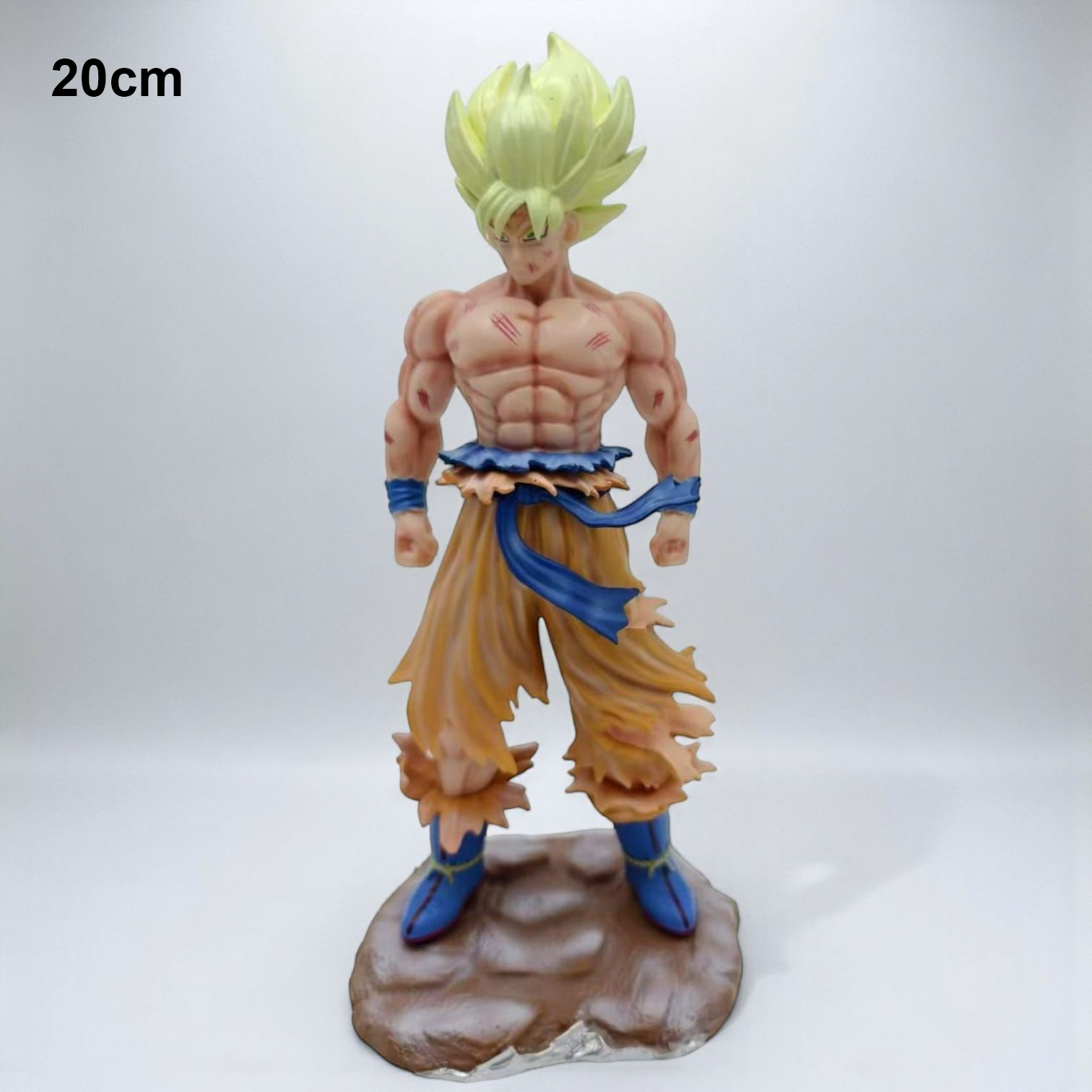 Unleash the raw power of Super Saiyan Goku with this 20cm battle-damaged collectible figure. Sculpted with intense detail, this statue features Goku in his iconic torn outfit, bruised body, and electrifying Super Saiyan aura.