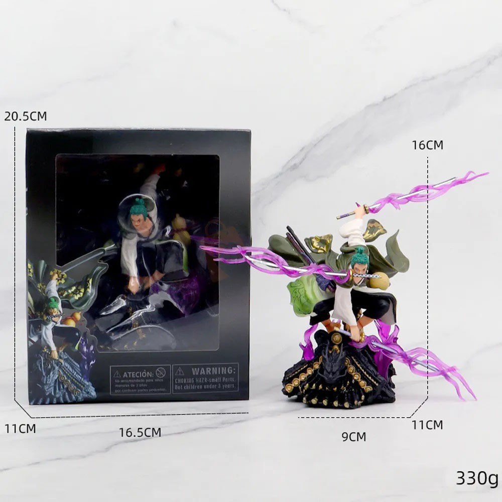 This 16cm Roronoa Zoro figure captures the legendary swordsman unleashing his fierce battle aura, complete with dynamic purple energy effects and signature three-sword stance. With intense detailing across his armor, swords, and base, this collectible reflects Zoro’s unstoppable willpower and warrior presence — a must-have centerpiece for One Piece fans.